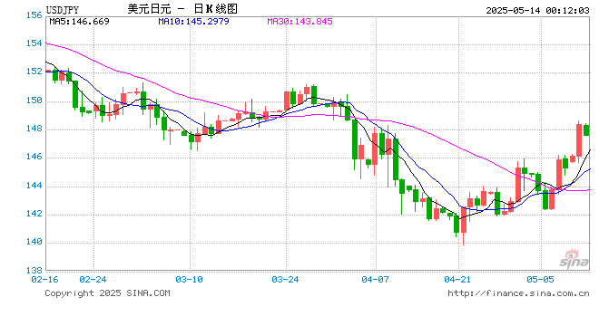 新浪外汇消息2025年05月14日,截至00时11分,外汇市场上美元兑日元汇率跌破1美元兑换147.6210日元。跌幅为-0.5028%