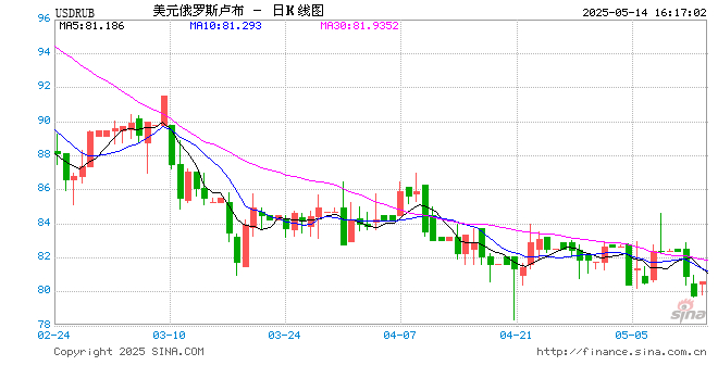 05月14日 美元兑俄罗斯卢布突破80.5800 折算100俄罗斯卢布汇率兑8.8930人民币