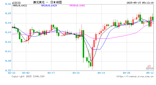 05月15日 澳元兑美元跌破0.6426 折算100澳元汇率兑464.2400人民币