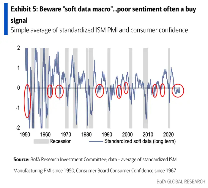 该行强调,“软数据”中包含的情绪与经济实际情况之间的差距越来越大。从历史上看,如果对经济的悲观情绪最终没有演变成一场真正的衰退,那就会引发股市的大幅上涨。