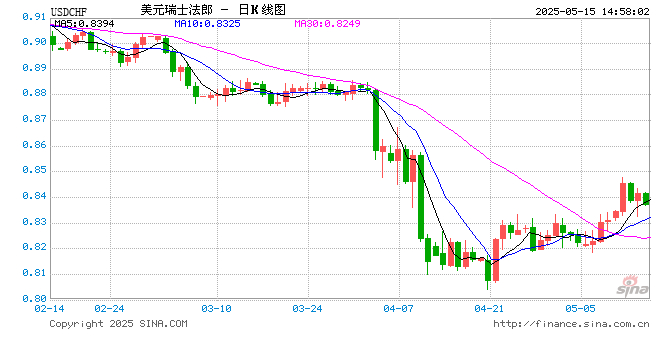 05月15日 美元兑瑞士法郎跌破0.8371 折算100瑞士法郎汇率兑860.5600人民币