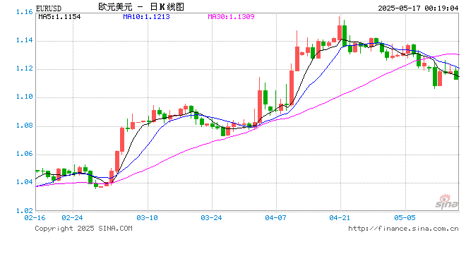 05月17日 欧元兑美元跌破1.1132 折算100欧元汇率兑802.6100人民币