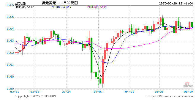 新浪外汇消息2025年05月20日,截至12时40分,外汇市场上澳元兑美元汇率跌破1澳元兑换0.6424美元。跌幅为-0.5064%