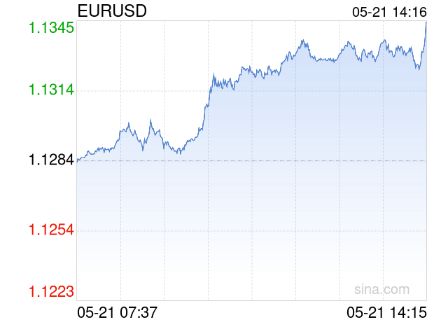 05月21日 欧元兑美元突破1.1344 折算100欧元汇率兑817.4200人民币