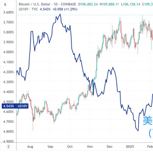 (比特币vs十年期美债收益率,来源:TradingView)