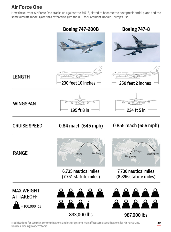 这架新飞机将是第三架经过改装后用作空军一号的飞机,将取代两架已经使用了35年且存在维护问题的飞机。