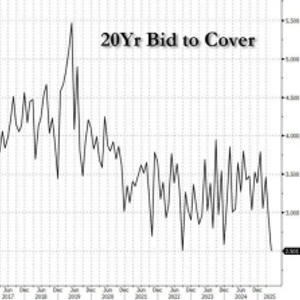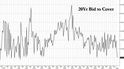 这段时间美债一直是市场密切关注的话题,由于对美国债务违约和关税带来通胀等问题的担忧,美债已经从曾经的宠儿转为了被抛售的对象。但就在10年美债收益率上破4.5%的同时,日债市场则是传来了崩盘的消息——日本财务省周二进行的1万亿日元20年期国债拍卖结果极为灾难,投标倍数仅为2.5倍,远低于上月的2.96倍,创下自2012年以来的最低水平。
