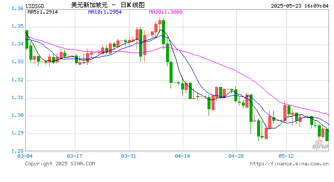 新浪外汇消息2025年05月23日,截至16时08分,外汇市场上美元兑新加坡元汇率跌破1美元兑换1.2858新加坡元。跌幅为-0.5176%