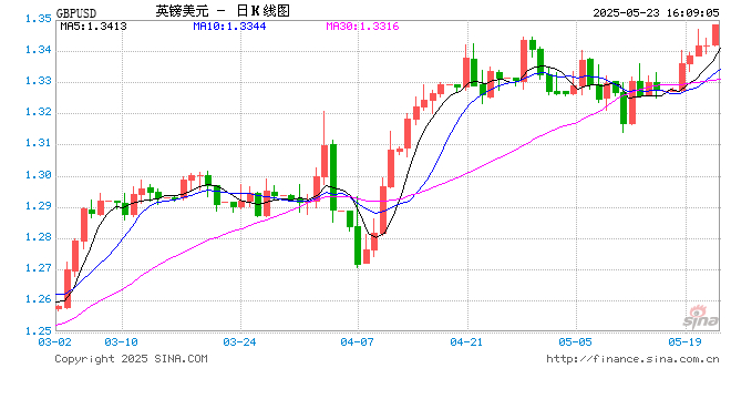 新浪外汇消息2025年05月23日,截至16时08分,外汇市场上英镑兑美元汇率突破1英镑兑换1.3485美元。涨幅为0.5091%