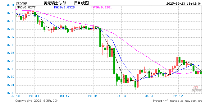 新浪外汇消息2025年05月23日,截至19时41分,外汇市场上美元兑瑞士法郎汇率跌破1美元兑换0.8239瑞士法郎。跌幅为-0.5072%