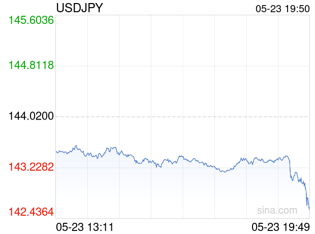 05月23日 美元兑日元跌破142.5690 折算100日元汇率兑5.0280人民币