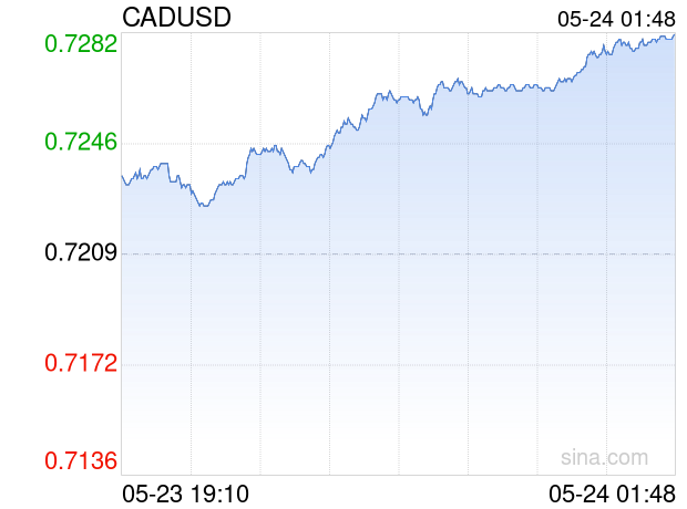05月24日 加元兑美元突破0.7282 折算100加元汇率兑523.0100人民币