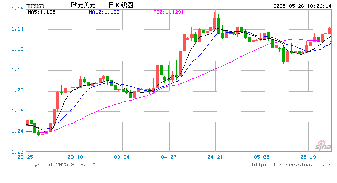 新浪外汇消息2025年05月26日,截至10时07分,外汇市场上欧元兑美元汇率突破1欧元兑换1.1418美元。涨幅为0.5061%