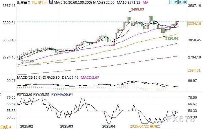 现货黄金日线图 来源:易汇通北京时间5月26日10:53 现货黄金 报 3351.56 美元/盎司