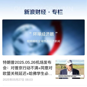栏目实时追踪美联储政策突变、地缘冲突升级、贸易战博弈等核心事件。即使零基础用户也能快速掌握关税冲击、汇率异动背后的投资逻辑。内容严选全球权威财经视角,紧扣市场实时脉搏,从特朗普关税变脸到欧盟反击策略,从美指百点震荡到原油价格暴动,每一条视频均以可视化数据模型和简明语言重构复杂议题,打破专业壁垒,让晦涩的宏观政策与普通人的钱袋子紧密相连。无论是深夜突发的央行加息,还是横跨大西洋的贸易硝烟,打开“环球经济眼”即可一键同步世界财经动态,抢占信息差就是抢占投资先机,即刻下载新浪财经APP订阅专栏,全球热点永不滞后,决策视野始终快人一步!