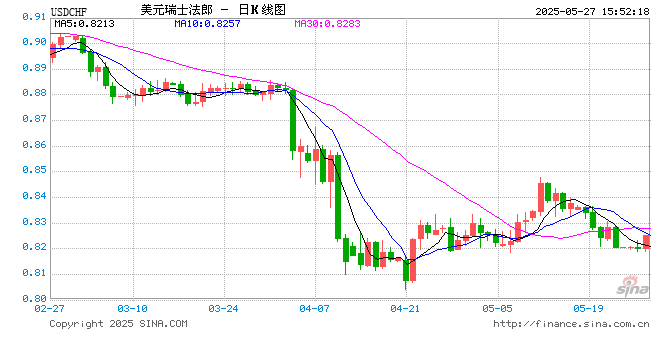05月27日 美元兑瑞士法郎突破0.8251 折算100瑞士法郎汇率兑872.2400人民币