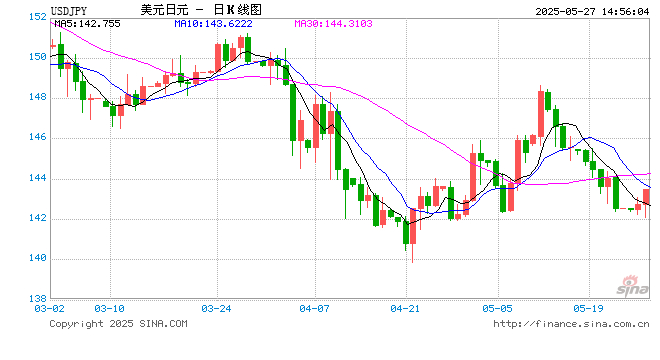 新浪外汇消息2025年05月27日,截至14时56分,外汇市场上美元兑日元汇率突破1美元兑换143.4750日元。涨幅为0.5149%