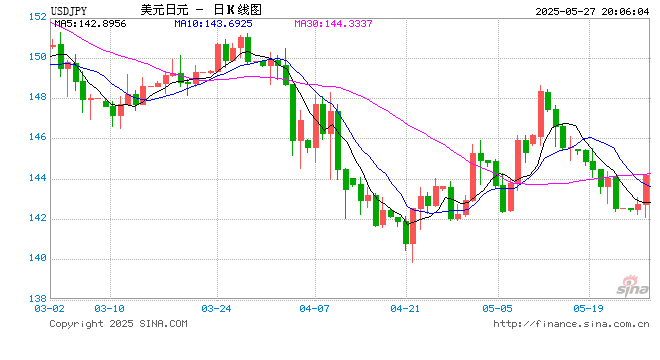 新浪外汇消息2025年05月27日,截至20时05分,外汇市场上美元兑日元汇率突破1美元兑换144.1680日元。涨幅为1.0004%