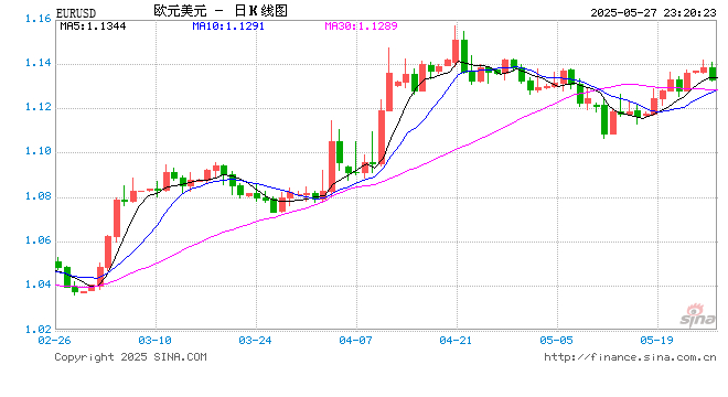 新浪外汇消息2025年05月27日,截至23时20分,外汇市场上欧元兑美元汇率跌破1欧元兑换1.1327美元。跌幅为-0.5007%