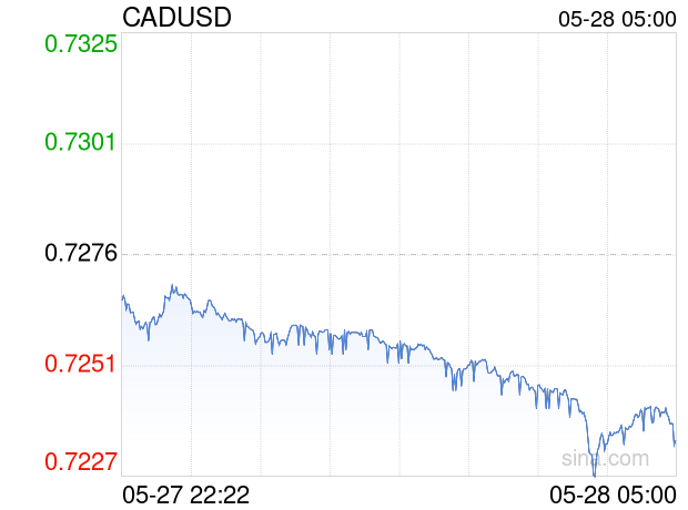 05月28日 加元兑美元跌破0.7235 折算100加元汇率兑522.6900人民币