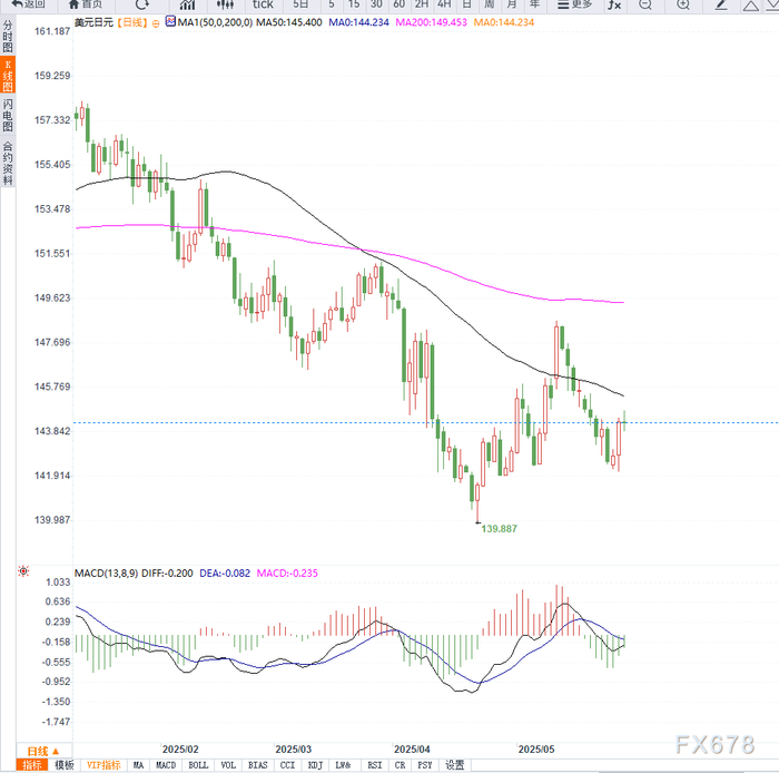 在全球风险偏好回升背景下,美国总统特朗普宣布将对欧盟50%关税的执行时间延至7月9日,也进一步削弱了日元的避险吸引力。