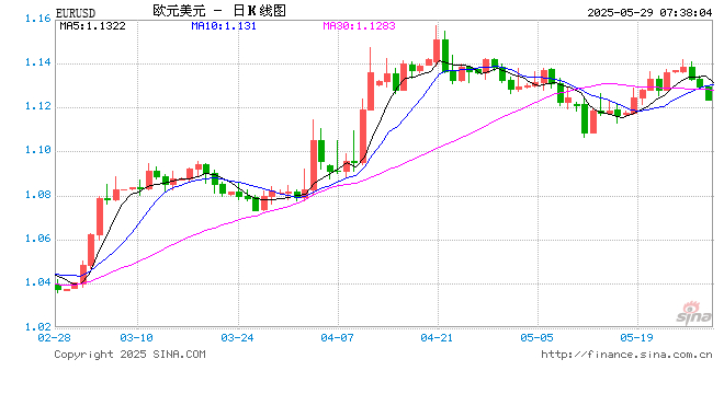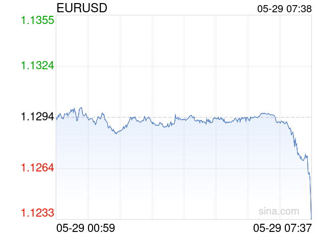 新浪外汇消息2025年05月29日,截至07时37分,外汇市场上欧元兑美元汇率跌破1欧元兑换1.1234美元。跌幅为-0.5286%