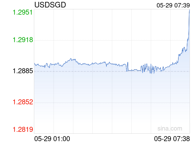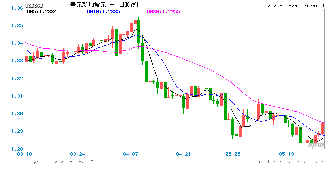 05月29日 美元兑新加坡元突破1.2950 折算100新加坡元汇率兑555.8300人民币