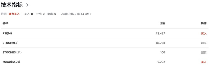 技术指标显示,日图级别MACD指标DIFF线与DEA线运行于零轴附近,柱状图持续呈现微弱放量,表明多头仍然占据相对优势。14日RSI相对强弱指标目前运行于50中性区域上方,美国市期间上升至57.75附近区域运行。表明多头强劲,但整体价格走势仍属整理区间之内。但仍然未能刷新5月26日高点59.90,表面多头强劲动能延续尚未明确,需紧惕短期回调风险。