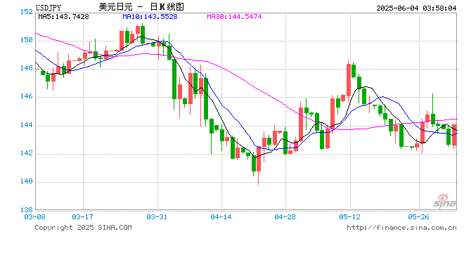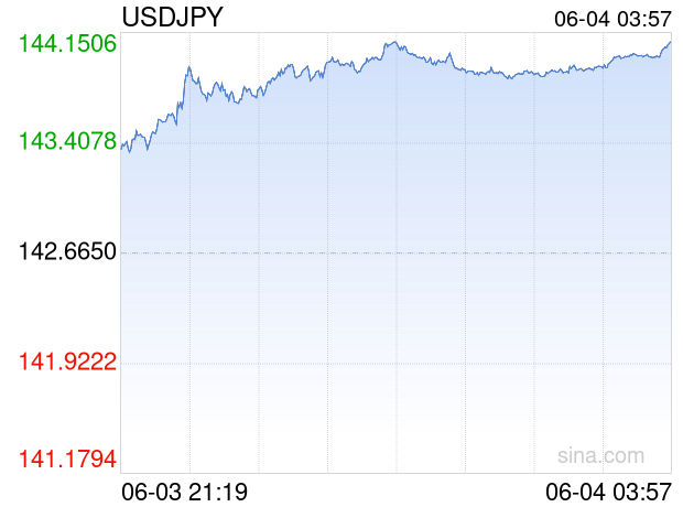 新浪外汇消息2025年06月04日,截至03时57分,外汇市场上美元兑日元汇率突破1美元兑换144.0940日元。涨幅为1.0016%