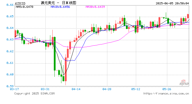 06月05日 澳元兑美元突破0.6522 折算100澳元汇率兑467.7500人民币