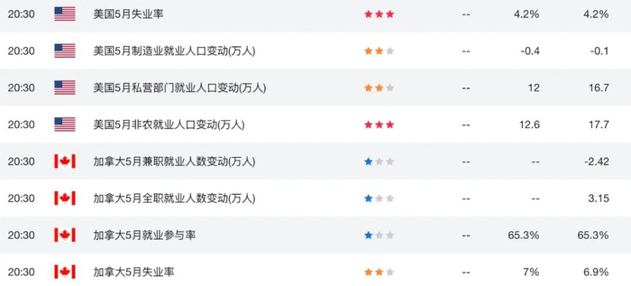 今日6月6日周五,市场没有日本方面重要经济数据的发布,市场焦距在北京时间20:30美国5月份非农就业人数变动、平均时薪及失业率数据的公布。