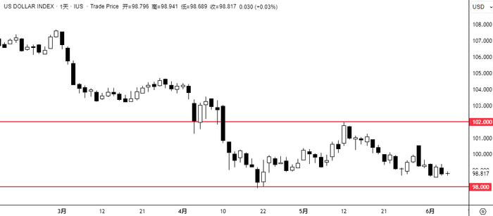 所以按照这种不对称思路,明晚的5月美国非农数据对美指也有着不对称风险: