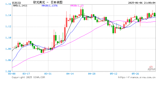 新浪外汇消息2025年06月06日,截至21时08分,外汇市场上欧元兑美元汇率跌破1欧元兑换1.1387美元。跌幅为-0.5259%
