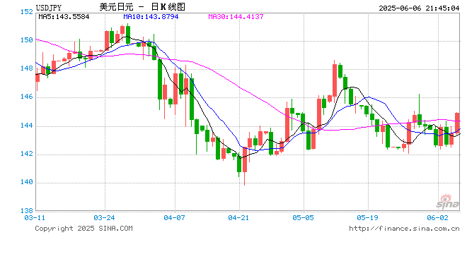 新浪外汇消息2025年06月06日,截至21时44分,外汇市场上美元兑日元汇率突破1美元兑换144.9410日元。涨幅为1.0049%