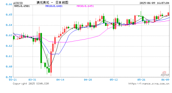 新浪外汇消息2025年06月09日,截至16时07分,外汇市场上澳元兑美元汇率突破1澳元兑换0.6524美元。涨幅为0.5053%