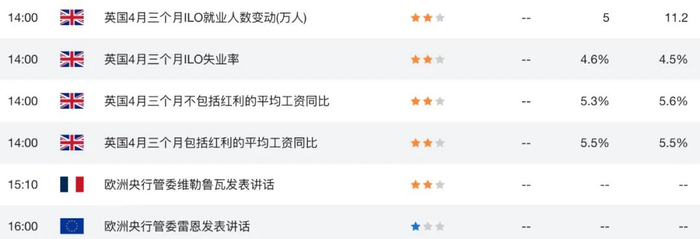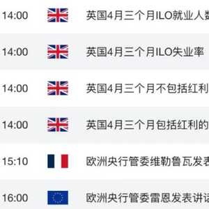 6月10日周二英国基本面将公布最新就业数据:4月三个月ILO失业率以及5月失业金申请人数,需加以密切关注。