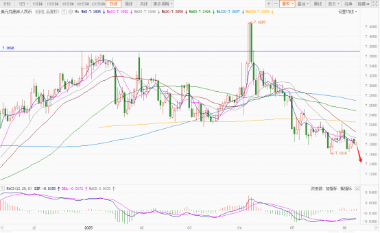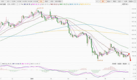 截至6月9日尾市,美元指数跌0.25%至98.939,对欧元、英镑等主要货币全面走低。技术层面,美元指数跌破关键均线呈空头排列,但RSI指标显示多空力量暂处平衡,存反弹可能。