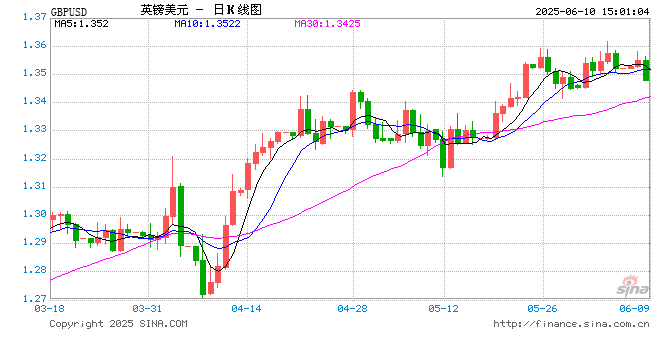 06月10日 英镑兑美元跌破1.3480 折算100英镑汇率兑968.9300人民币