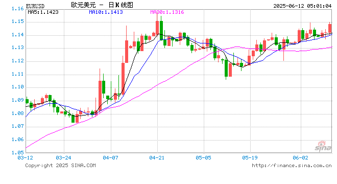 新浪外汇消息2025年06月12日,截至05时00分,外汇市场上欧元兑美元汇率突破1欧元兑换1.1486美元。涨幅为0.5330%