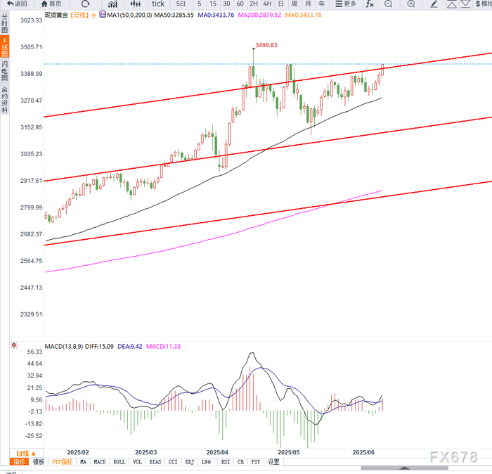若突破3450美元一线,后续有望挑战3500美元附近;若短期调整,支撑位关注3380美元附近。