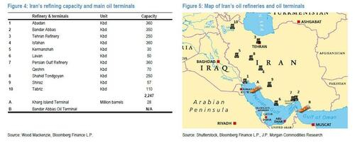伊朗的炼油与出口能力: 伊朗拥有庞大的炼油设施,处理能力为220万桶/日,以及大规模的石油出口基础设施。其主要石油出口终端位于波斯湾的哈尔克岛。然而,打击该设施不太可能得到美国政府的支持,因为后者会警惕破坏石油市场。