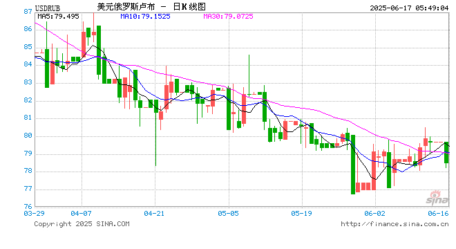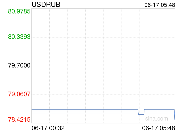 06月17日 美元兑俄罗斯卢布跌破78.5000 折算100俄罗斯卢布汇率兑9.0650人民币