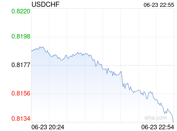 新浪外汇消息2025年06月23日,截至22时54分,外汇市场上美元兑瑞士法郎汇率跌破1美元兑换0.8134瑞士法郎。跌幅为-0.5185%
