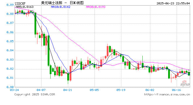 06月23日 美元兑瑞士法郎跌破0.8134 折算100瑞士法郎汇率兑881.8900人民币