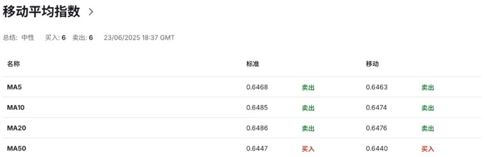 由于周末期间,美国打击伊朗核设施,导致市场避险情绪升温,美元获得显著提振,导致澳币在开盘跳空下跌至当日最低0.6370。然而美国市时段,因美联储副主席鲍曼的鸽派言论,迫使美元指数冲高回落,澳币则受益大幅反弹至当日最高0.6460。
