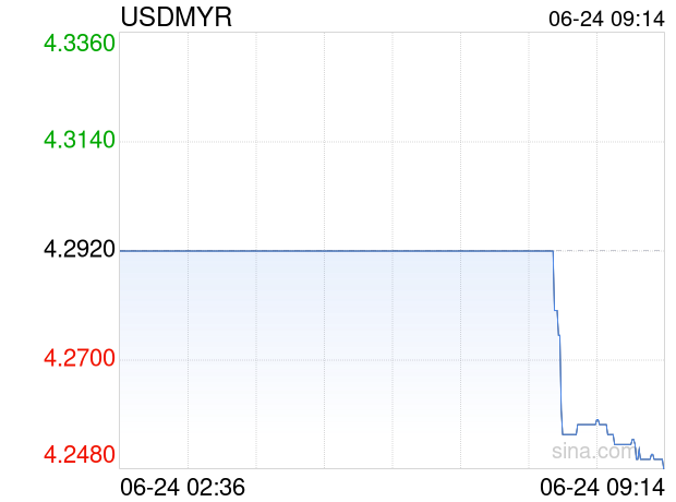 06月24日 美元兑马来西亚林吉特跌破4.2480 折算100马来西亚林吉特汇率兑168.6300人民币