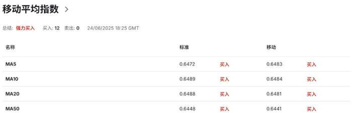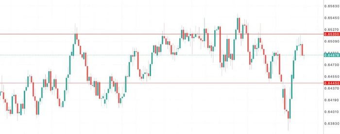 受美元指数延续周一大幅下跌走势影响,澳币在周二持续反弹上行,当日价格最高触及0.6518,最低下探至0.6453。尽管澳币短期出现强势反弹,但在汇价未突破0.6550阻力区域之前,其多头动能的持续性仍存疑。