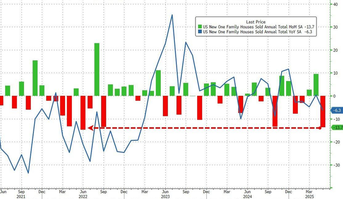 周三低迷的美国楼市数据,也进一步加深了市场上的降息预期。美国商务部的数据显示,5月份美国新屋购买量降至七个月以来的最低点,原因是大量销售激励措施未能缓解经济承受能力的限制。上月美国新屋销售总数年化为62.3万套,环比下降13.7%,大幅低于市场预期的-6.7%,也创下了自2022年6月以来最大的降幅。