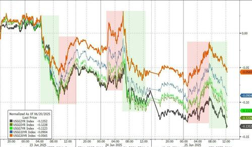 财联社6月26日讯(编辑 潇湘)周三(6月25日),各期限美债收益率纷纷小幅回落,随着当天公布的美国楼市数据表现不佳,市场的降息预期再度有所升温。而在债市上,这一押注的最佳体现,无疑是美债收益率曲线的多个部分出现了四年来最为“陡峭”的局面……