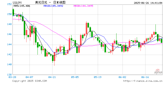新浪外汇消息2025年06月26日,截至14时40分,外汇市场上美元兑日元汇率跌破1美元兑换144.4130日元。跌幅为-0.5105%